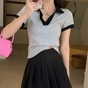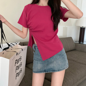 褶皱开叉不规则短袖T恤女ins甜辣风设计感别致纯色...