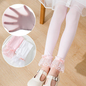 儿童九分裤袜 女童新款春夏款蕾丝花朵边花边裤 白色...