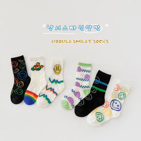 1181儿童袜子批发2022夏季涂鸦笑脸网眼袜卡丝...