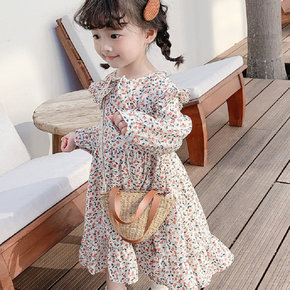 女童裙子碎花娃娃领长袖连衣裙公主裙21秋装新款外贸...
