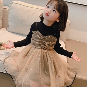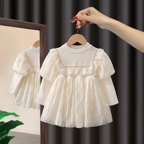 女童春秋连衣裙子新款网纱公主裙女宝宝洋气卫衣学生长...