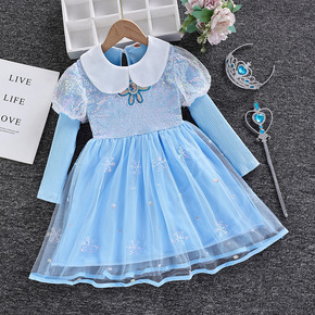 迪士尼冰雪奇缘爱莎公主裙女童秋装短袖裙子儿童生日礼...