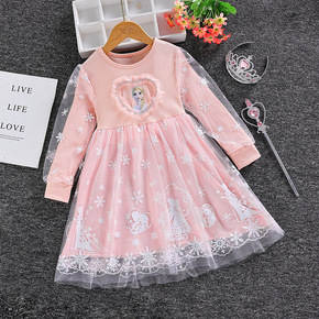 2021秋季女童连衣裙女孩卡通卫衣网纱拼接连衣裙童...