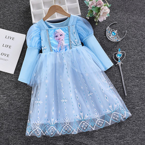 冰雪奇缘儿童爱莎公主裙秋冬女童艾莎连衣裙秋装爱沙安...