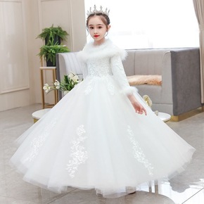 女童洋气新款时尚公主风超仙网纱长袖连衣裙春秋款褶皱...