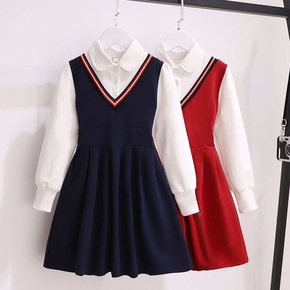 女童裙子小香风气质连衣裙假两件拼接款22秋装新款外...