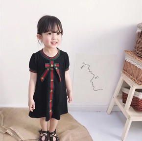 韩版女童圆领蝴蝶结连衣裙2021夏季新款女宝宝洋气...