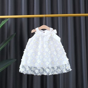2022年夏季新款满身蝴蝶网纱连衣裙 女童个性领口...
