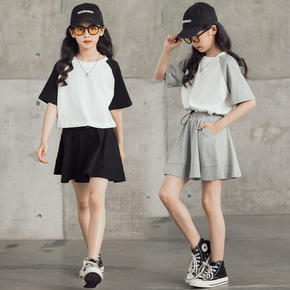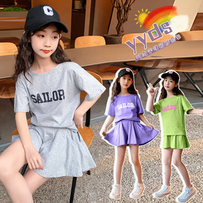 女童夏短袖T恤+裙裤两件套2022新款中大童韩版休...