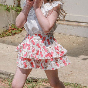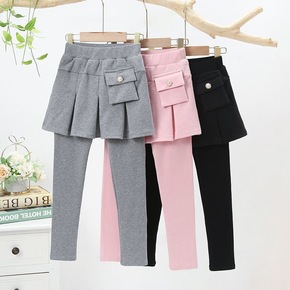 2022秋款草莓珊女童甜美花边坑条花边条绒裙裤现货...