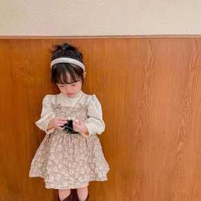 2022秋季新款女童套装时尚洋气中小童小花吊带裙两...
