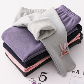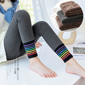 女童加绒打底裤秋冬外穿加厚儿童纯棉长裤冬季女孩中大...
