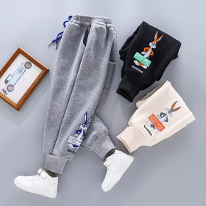 女童运动长裤秋冬新款加绒加厚儿童休闲宽松束脚裤男宝...