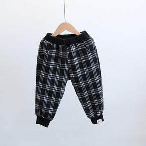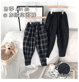 2021儿童裤子秋冬新款男童加绒格子裤女童一体绒卫...
