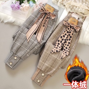 女童加绒裤子2021秋冬装新款中大童洋气女孩一体绒...