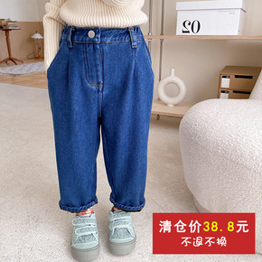 【不退不换清款】男女童休闲长裤子儿童韩版一体加绒直...