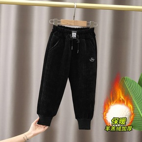 男童冬加绒加厚运动卫裤儿童裤子新款中小童一体绒长裤...