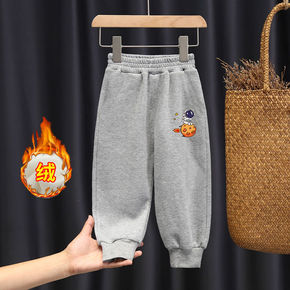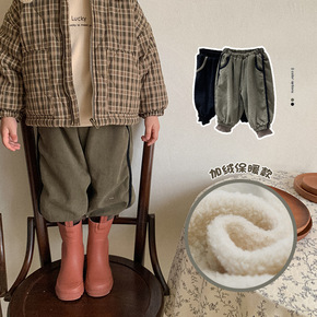 男童加绒卫裤外穿2021韩国秋冬新款中小童时髦女童...