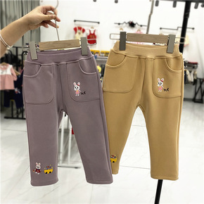 中小童秋冬加绒加厚裤子洋气百搭束脚裤女宝宝儿童休闲...
