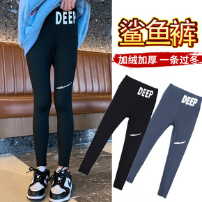 女童秋冬装加厚打底裤2021新款洋气字母女孩时尚中...