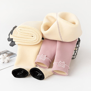 女童裤子秋冬外穿中大童加绒加厚一体绒洋气潮流儿童冬...