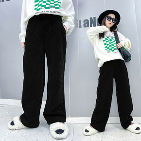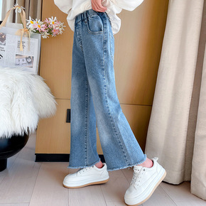 女童洋气小直筒牛仔裤高弹宝宝秋装新款儿童休闲阔腿长...