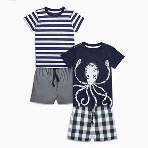 跨境亚马逊外贸童装2022冰莫条前贴袋7分袖7分裤...