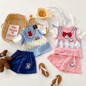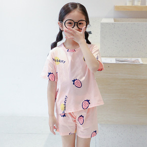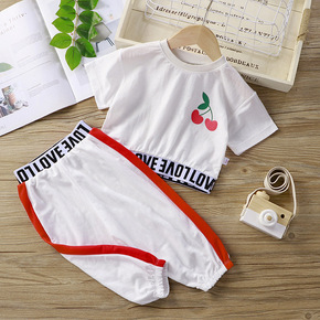 新款夏季儿童短袖套装全棉女童t桖休闲两件套中小童空...