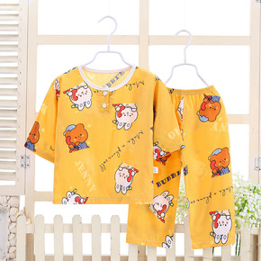 1-15岁夏季绵绸儿童睡衣套装棉绸男童女童小孩宝宝...