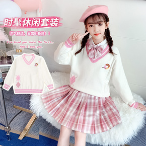 女童2021新款秋冬韩版中大童JK毛衣套装三件套批...