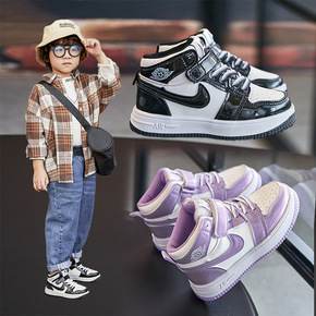 儿童小白鞋真皮加绒女童鞋2021秋冬季新款男童运动...