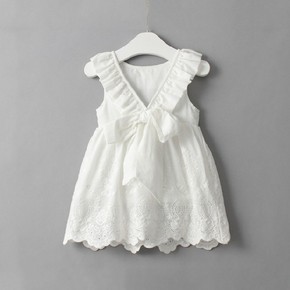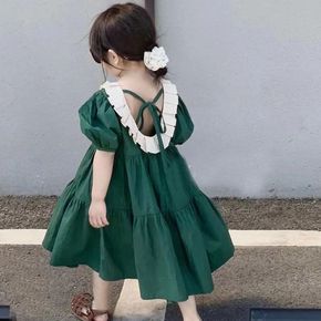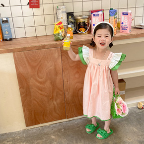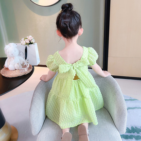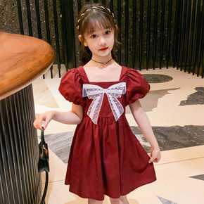 女童夏装连衣裙2022新款韩版女孩蝴蝶结短袖裙子儿...