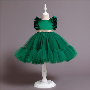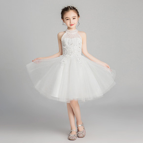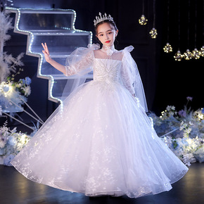 儿童婚纱公主裙女童走秀晚礼服花童钉珠蓬蓬裙欧美服装...