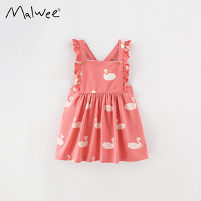 malwee女童夏装欧美中小童女童装印花棉洋气背带...