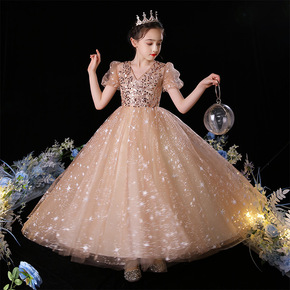 儿童礼服拖尾公主裙现货粉色女童连衣裙六一表演服夏款...