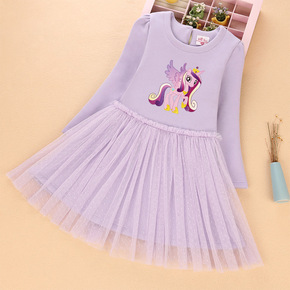冰雪爱莎公主裙加绒加厚冬款渐变网纱印花韩国绒女童圣...