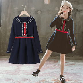 子爱卓工2021儿童冬季女童拼色线polo连衣裙中...