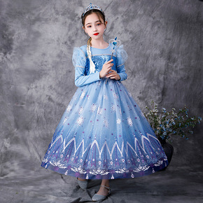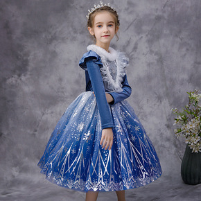 新冰雪奇缘艾沙爱莎春款长袖爱莎公主裙女童安娜生日儿...