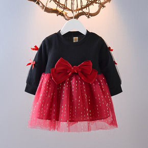 一件代发女童新年公主裙秋冬21新款儿童洋气加绒毛衣...