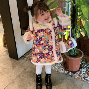 宝宝衣服冬季女宝宝连衣裙年服女童中国风复古长袖拜年...