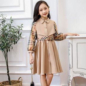 厂家直供女童风衣裙欧美中长款大摆大码段开胸女童秋款...