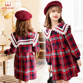 女童加绒秋冬装2021秋款JK风公主裙网红格子儿童...