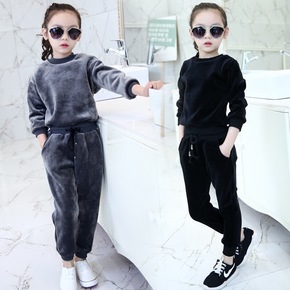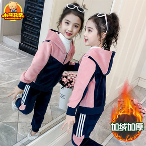 女童秋装2021新款大女孩运动春秋卫衣金丝绒两件套...