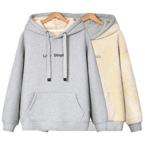 保暖羊羔绒卫衣女生加绒加厚少女初高中学生2021年...