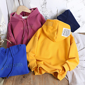 韩系纯色男女童拉链开衫连帽卫衣202秋冬装宽松加绒...