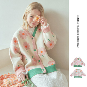 瑞吉儿2022春夏新品RJ儿童针织开衫 洋气花朵拼...