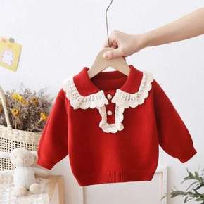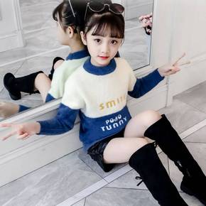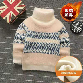 女童毛衣圆领2021秋冬新款水貂绒羊绒翻领洋气婴儿...