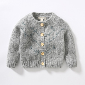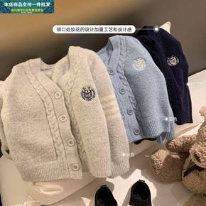 现货INS童装秋冬新款中小童羊毛衫长袖保暖手绣开衫...