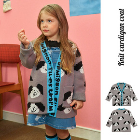 韩版童装 2022春夏新款儿童针织开衫外套 小狗宽...