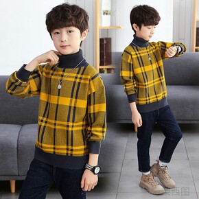 小孩高领毛衣男童毛衣2021秋冬装新款韩版中大童针...
